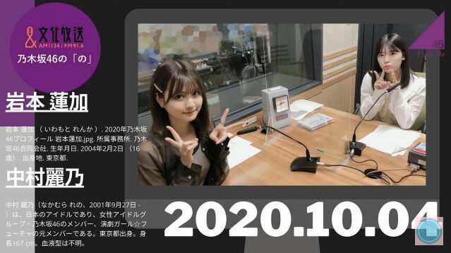 【動画】20201004 乃木坂46の「の」 【岩本蓮加、中村麗乃】 2020年10月04日 カテゴリ:乃木坂46ラジオ mixiチェック 【【動画】20201004 乃木坂46の「の」 【岩本蓮加、中村麗乃】】の続きを読む タグ :#乃木坂46#岩本蓮加#中村麗乃