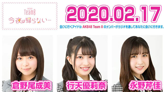 【動画】2020.02.17 AKB48 Team8 今夜は帰らない・・・ 【倉野尾成美・行天優莉奈・永野芹佳】 2020年02月19日 カテゴリ:AKB48今夜は帰らない・・・ mixiチェック 【【動画】2020.02.17 AKB48 Team8 今夜は帰らない・・・ 【倉野尾成美・行天優莉奈・永野芹佳】】の続きを読む タグ :#AKB48#Team8#今夜は帰らない・・・#倉野尾成美#行天優莉奈#永野芹佳